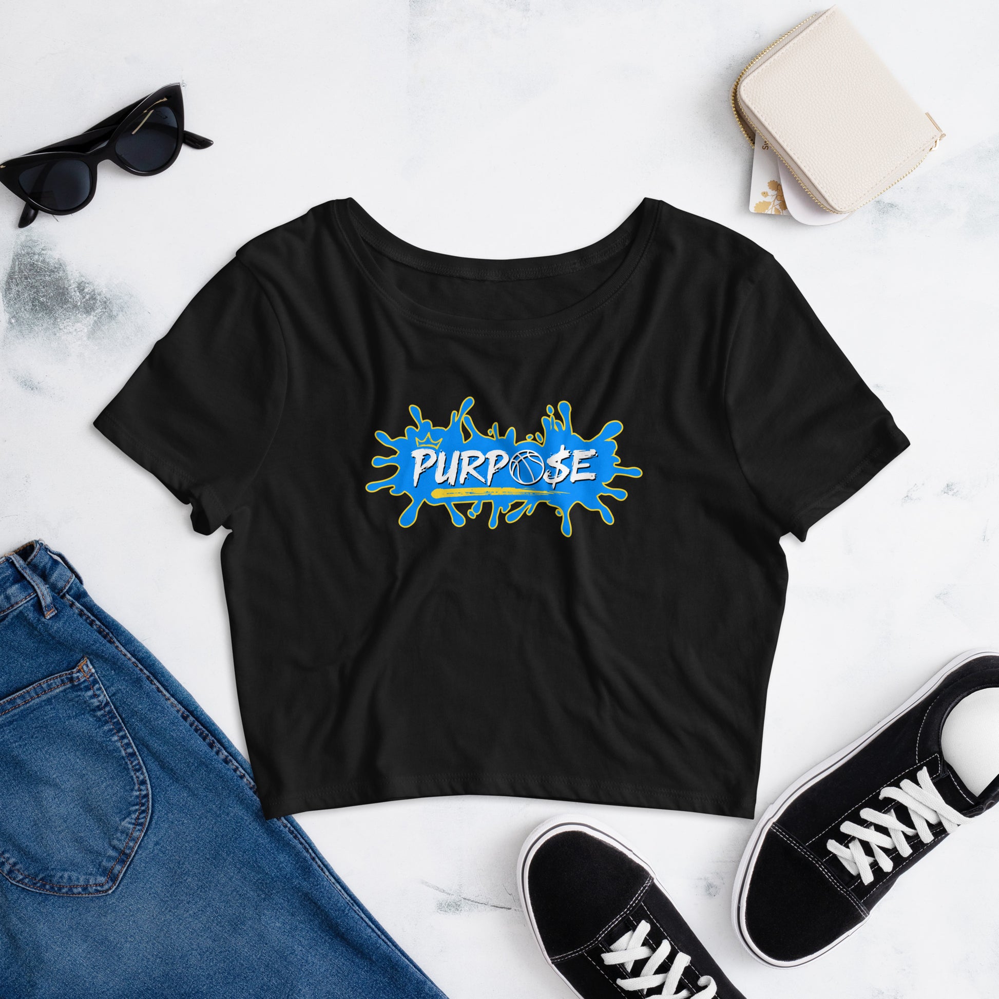 the chicago-themed " purpose " women's crop tee ( black )